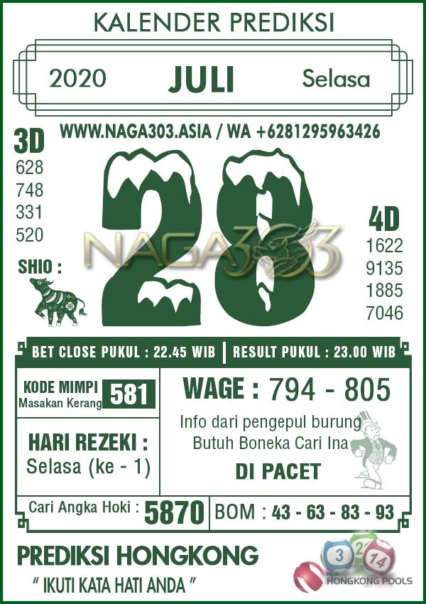 Prediksi Hongkong Pools Selasa 28 Juli 2020 | Web Toto Naga303