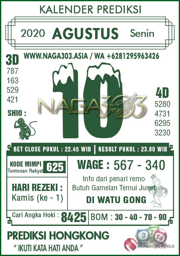 Prediksi Hongkong Pools Senin 10 Agustus 2020 | Web Toto Naga303