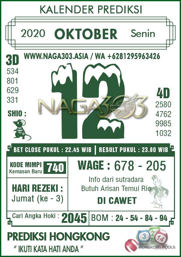 Prediksi Hongkong Pools Senin 12 Oktober 2020 | Web Toto Naga303