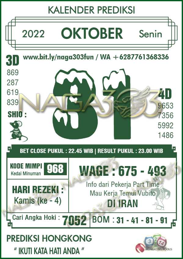 Prediksi Hongkong Pools Senin 31 Oktober 2022 | Web Toto Naga303