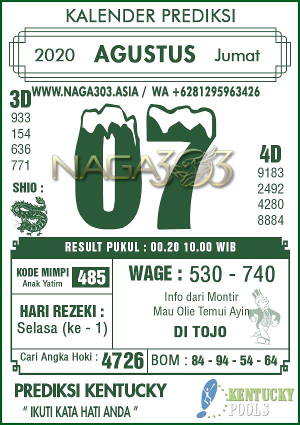 Prediksi Kentucky Pools Jumat 07 Agustus 2020