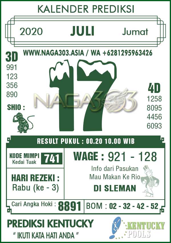 Prediksi Kentucky Pools Jumat 17 Juli 2020 | Web Toto Naga303