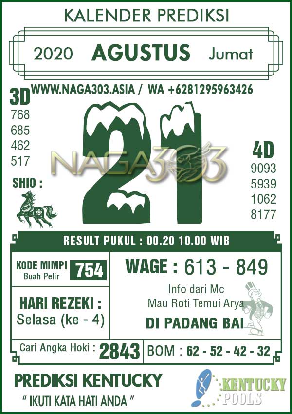 Agen Judi Online Terbesar & Terpercaya, Kami biasa memberikan info yaitu Prediksi KENTUCKY POOLS, dimana prediksi ini telah kami racik terlebih