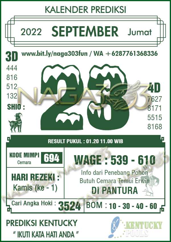 Agen Judi Online Terbesar & Terpercaya, Kami biasa memberikan info yaitu Prediksi KENTUCKY POOLS, dimana prediksi ini telah kami racik terlebih