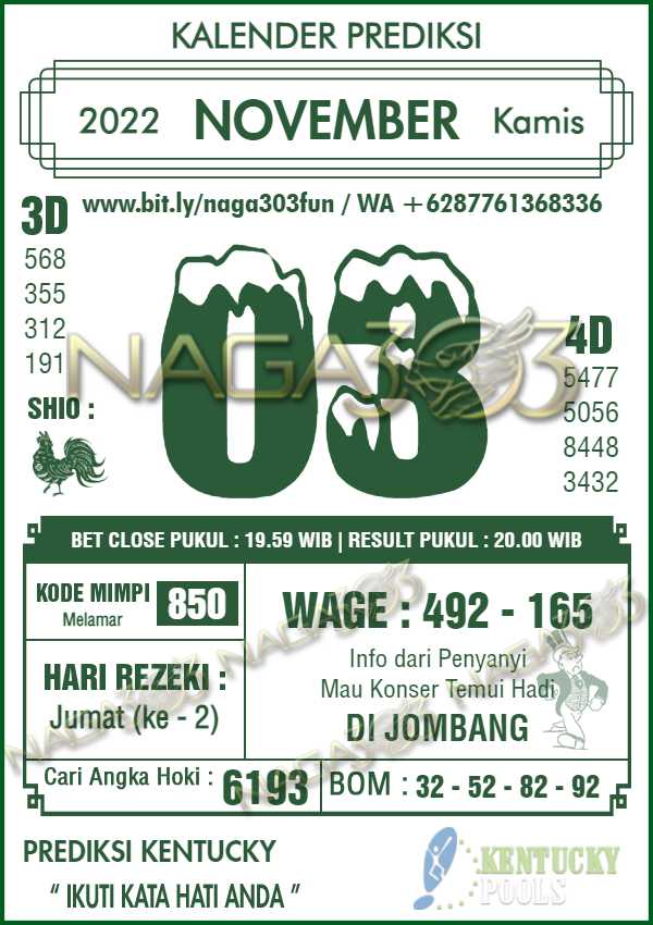Prediksi Kentucky Pools Kamis 03 November 2022 | Web Toto Naga303
