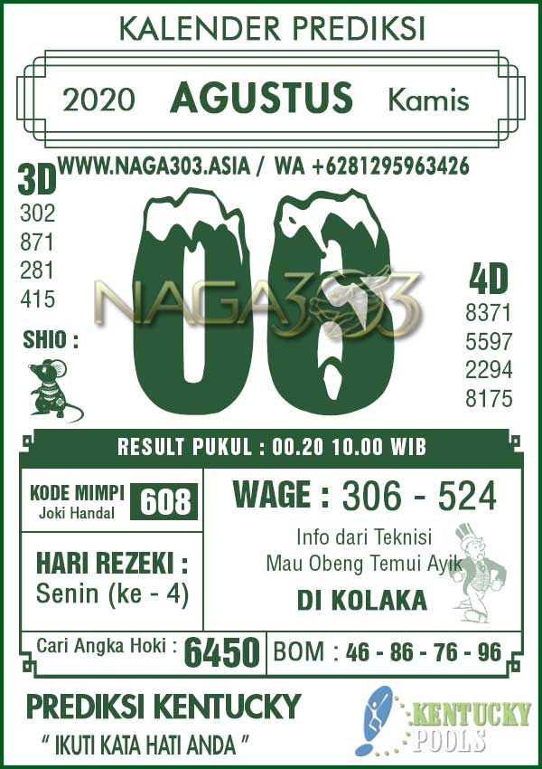 Prediksi Kentucky Pools Kamis 06 Agustus 2020 | Web Toto Naga303