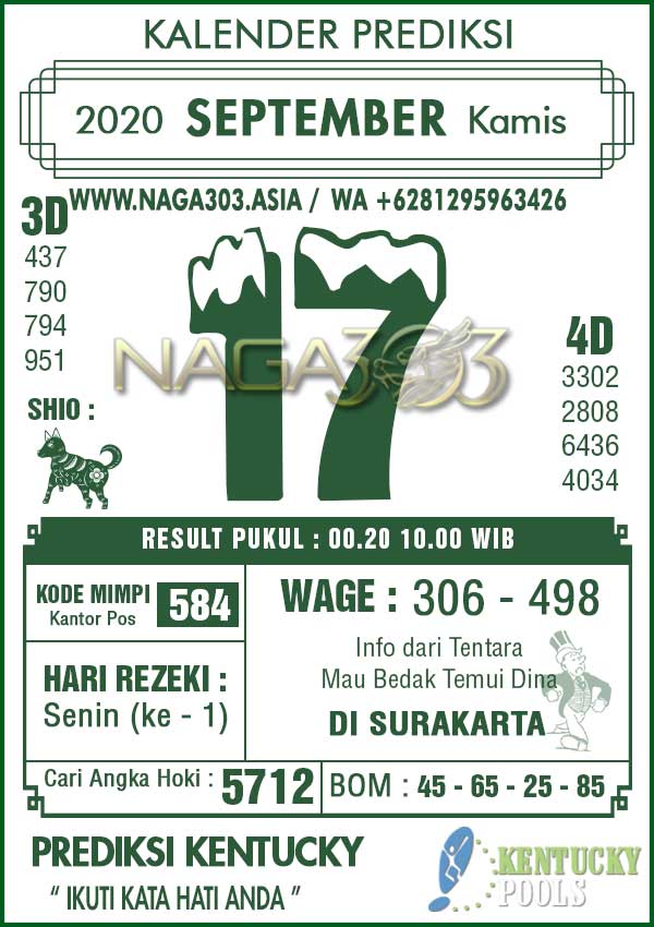 Prediksi Kentucky Pools Kamis 17 September 2020