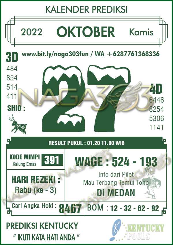 Agen Judi Online Terbesar & Terpercaya, Kami biasa memberikan info yaitu Prediksi KENTUCKY POOLS, dimana prediksi ini telah kami racik terlebih