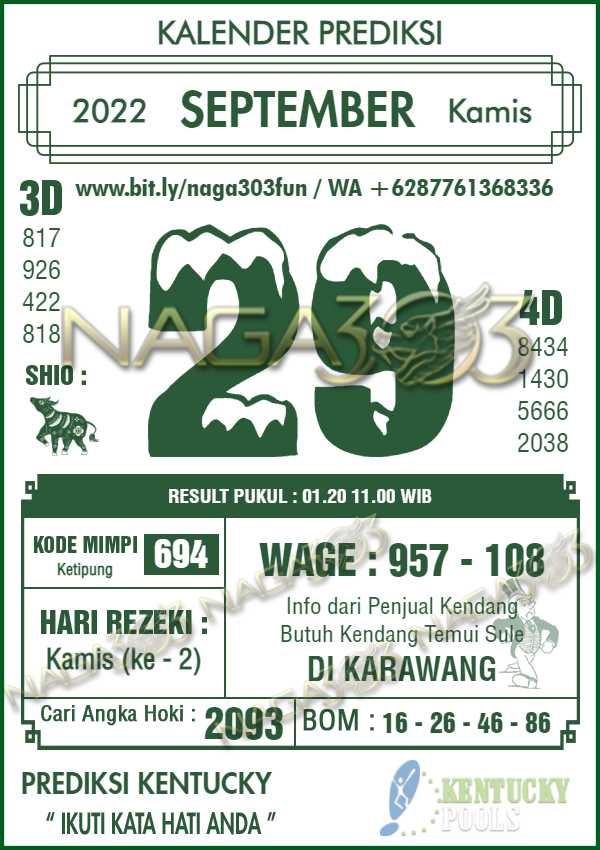 Agen Judi Online Terbesar & Terpercaya, Kami biasa memberikan info yaitu Prediksi KENTUCKY POOLS, dimana prediksi ini telah kami racik terlebih