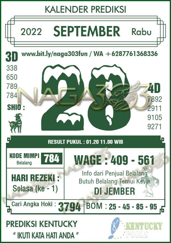Agen Judi Online Terbesar & Terpercaya, Kami biasa memberikan info yaitu Prediksi KENTUCKY POOLS, dimana prediksi ini telah kami racik terlebih