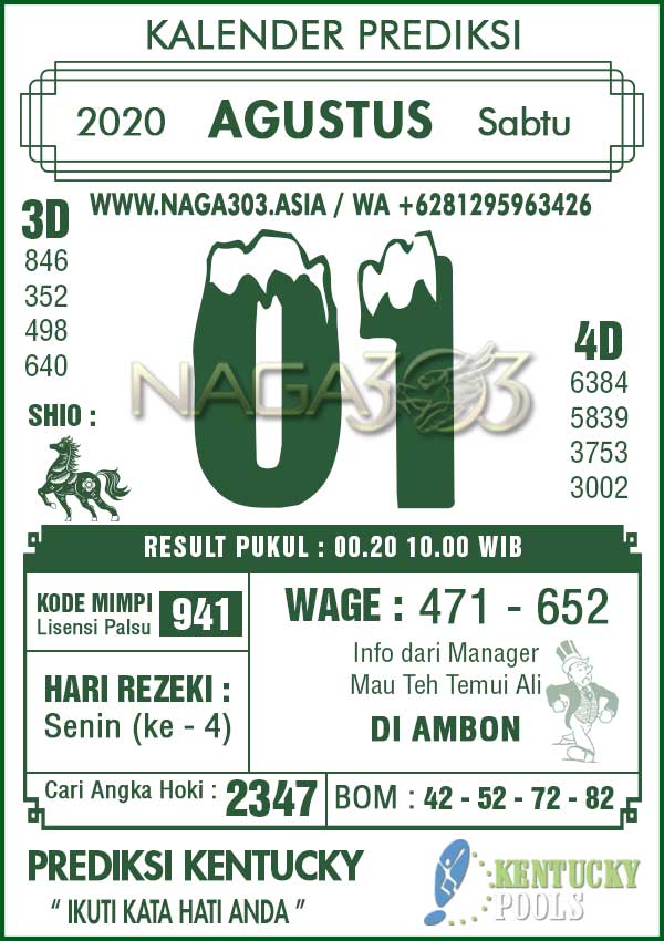 Agen Judi Online Terbesar & Terpercaya, Kami biasa memberikan info yaitu Prediksi KENTUCKY POOLS, dimana prediksi ini telah kami racik terlebih