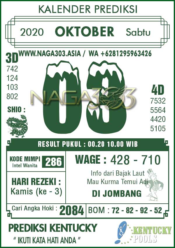 Prediksi Kentucky Pools Sabtu 03 Oktober 2020 | Web Toto Naga303