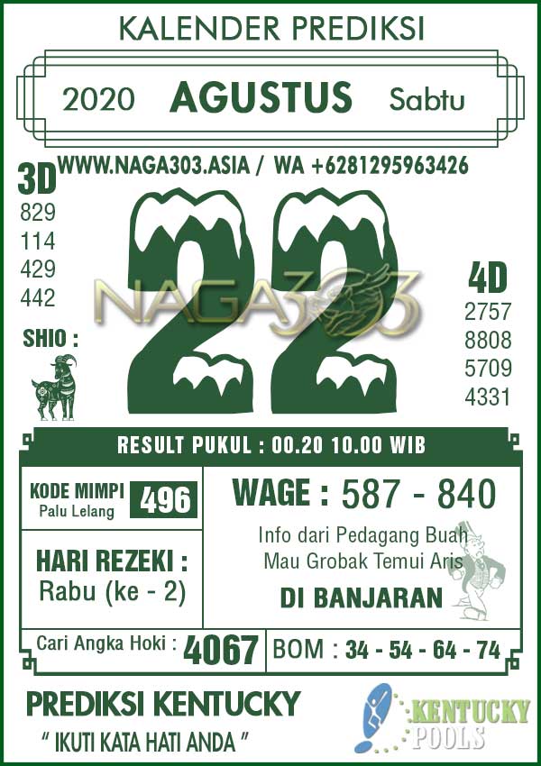 Prediksi Kentucky Pools Sabtu 22 Agustus 2020 | Web Toto Naga303