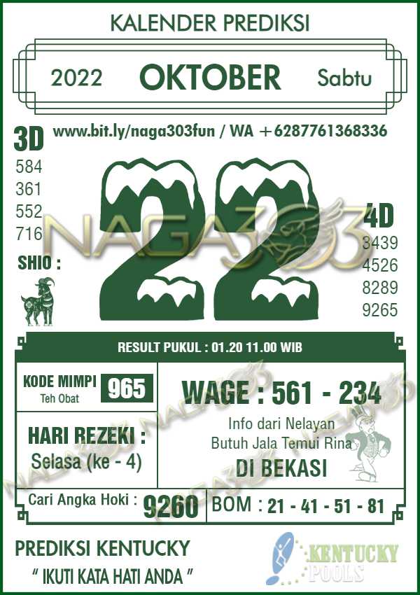 Agen Judi Online Terbesar & Terpercaya, Kami biasa memberikan info yaitu Prediksi KENTUCKY POOLS, dimana prediksi ini telah kami racik terlebih