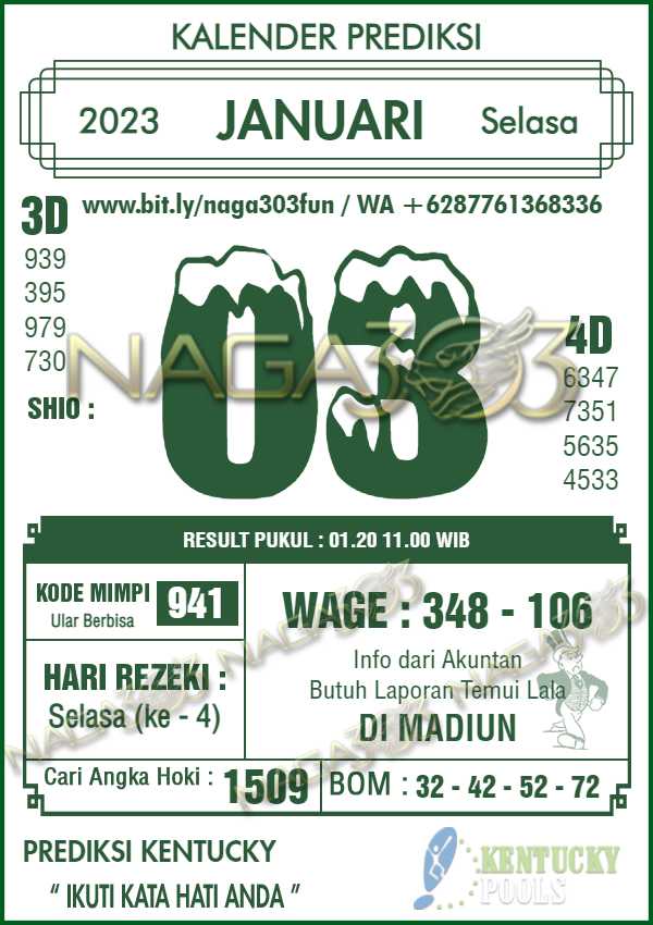 Prediksi Kentucky Pools Selasa 03 Januari 2023 | Web Toto Naga303