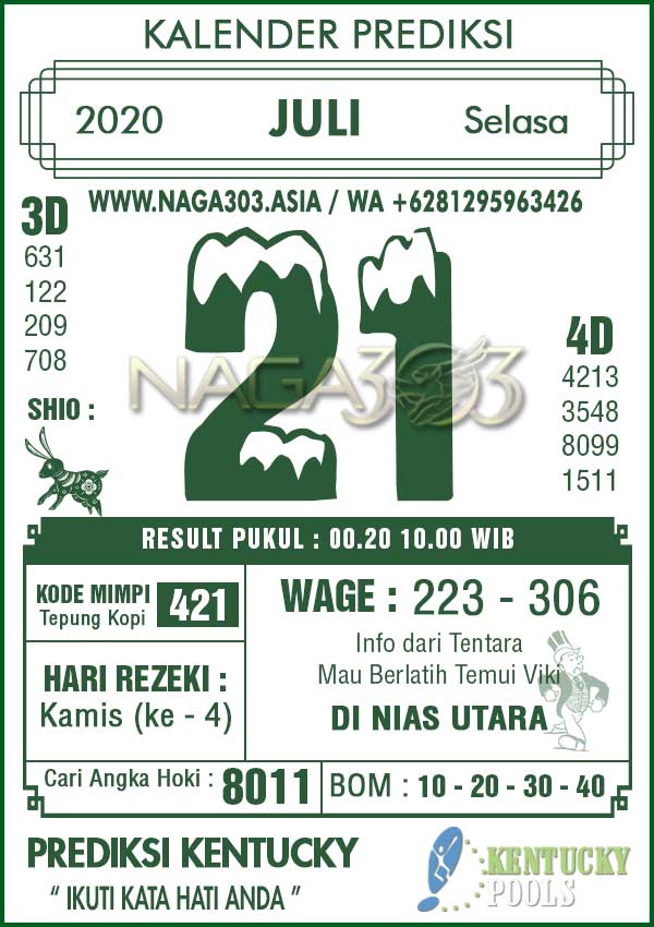 Prediksi Kentucky Pools Selasa 21 Juli 2020