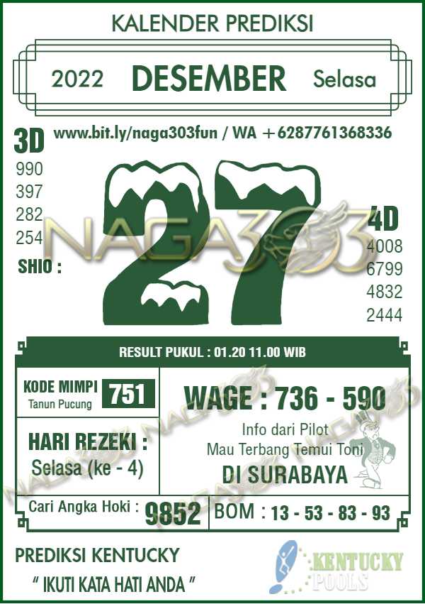 Prediksi Kentucky Pools Selasa 27 Desember 2022