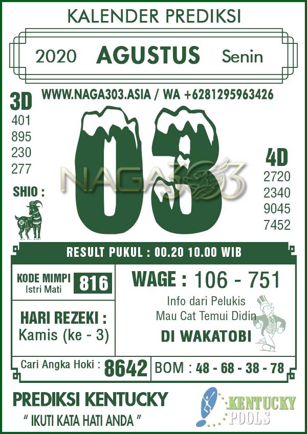 Prediksi Kentucky Pools Senin 03 Agustus 2020 | Web Toto Naga303