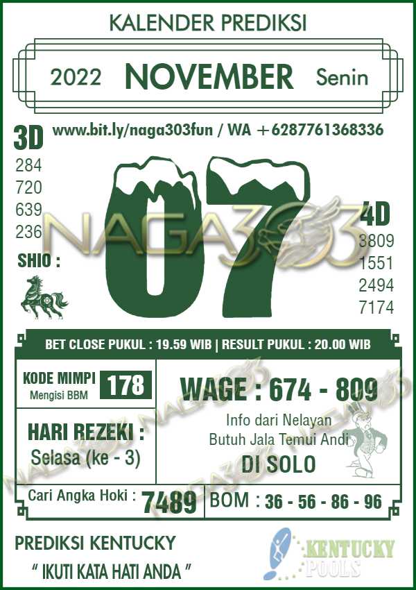 Agen Judi Online Terbesar & Terpercaya, Kami biasa memberikan info yaitu Prediksi KENTUCKY POOLS, dimana prediksi ini telah kami racik terlebih
