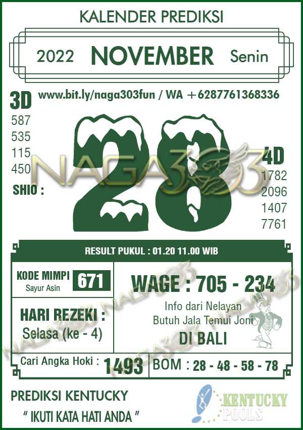 Prediksi Kentucky Pools Senin 28 November 2022