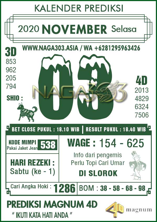 Prediksi Magnum 4D Selasa 03 November 2020 | Web Toto Naga303