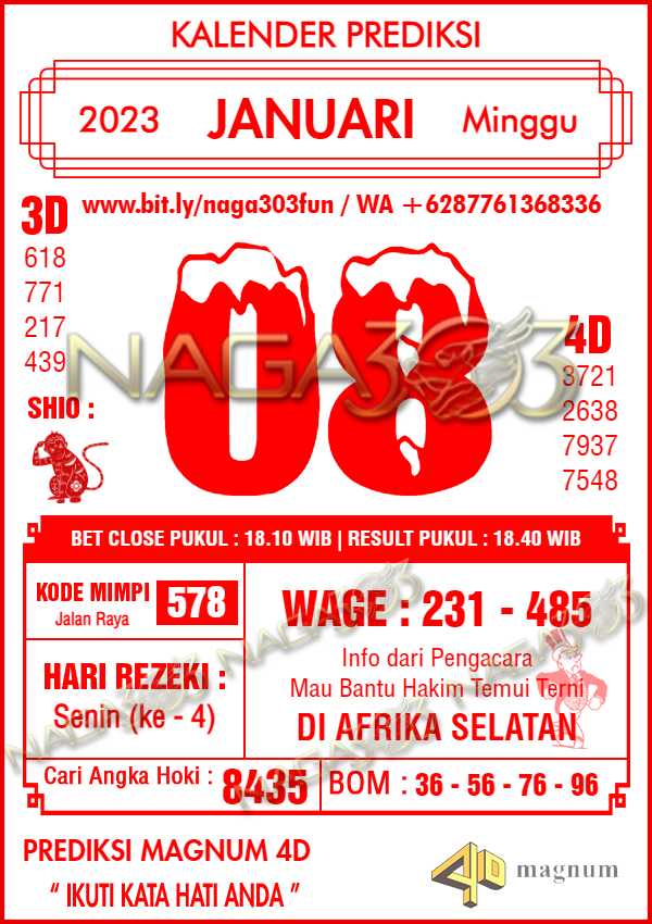 Prediksi Magnum 4D Minggu 08 Januari 2023 | Web Toto Naga303