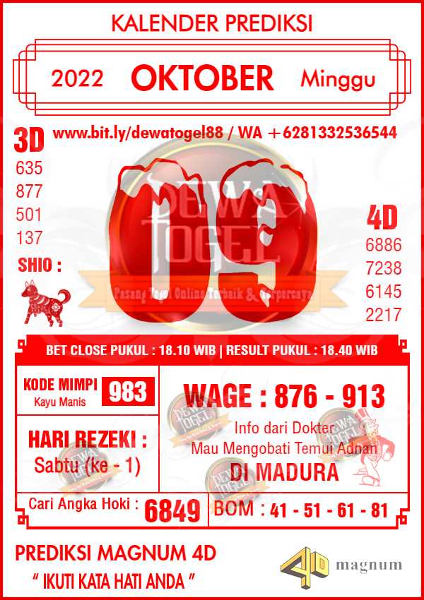 Prediksi Magnum 4D Minggu 09 Oktober 2022