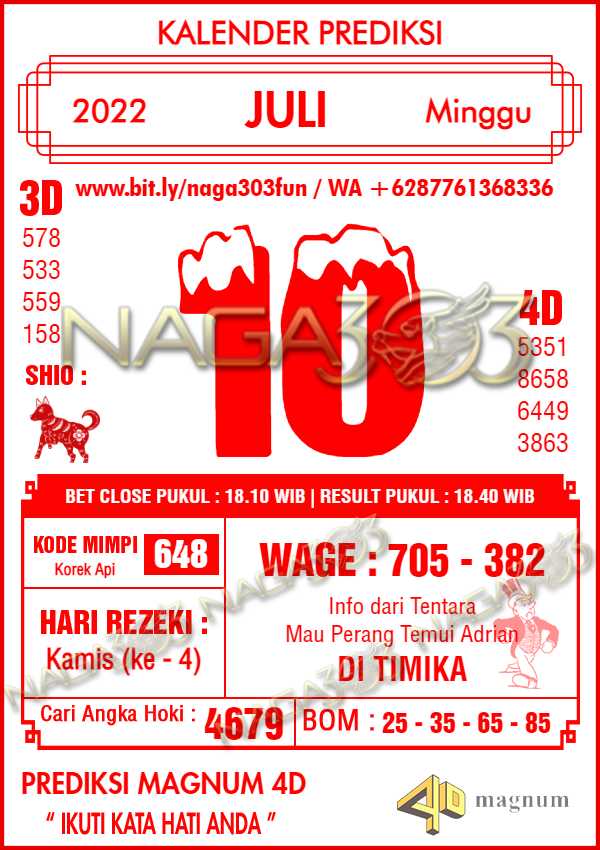 Prediksi Magnum 4D Minggu 10 Juli 2022 | Web Toto Naga303