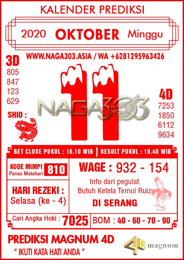 Prediksi Magnum 4D Minggu 11 Oktober 2020 | Web Toto Naga303