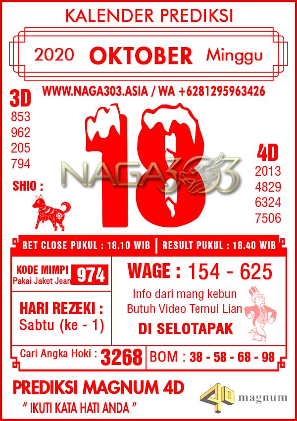 Prediksi Magnum 4D Minggu 18 Oktober 2020 | Web Toto Naga303
