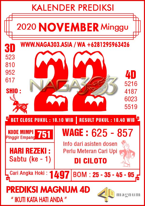 Prediksi Magnum 4D Minggu 22 November 2020 | Web Toto Naga303