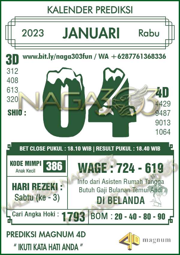 Prediksi Magnum 4D Rabu 04 Januari 2023