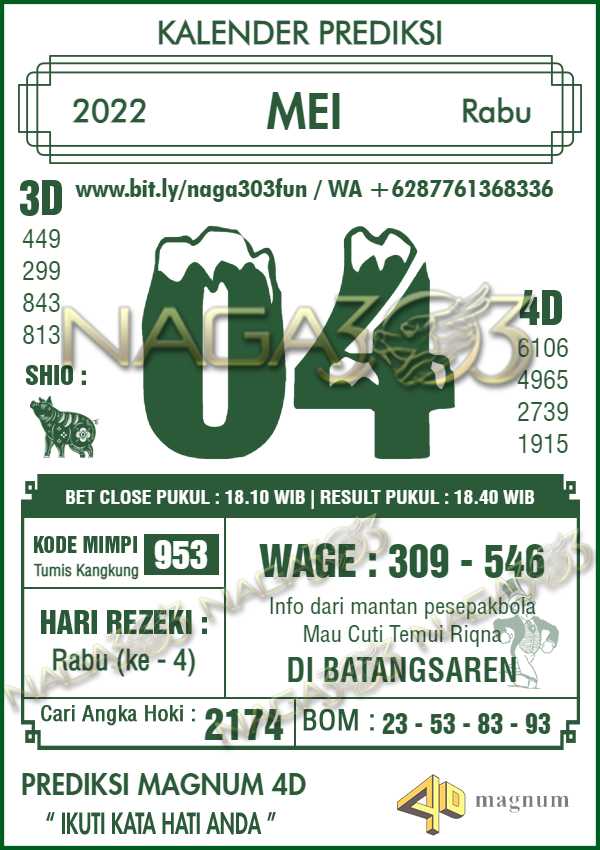 Prediksi Magnum 4D Rabu 04 Mei 2022 | Web Toto Naga303