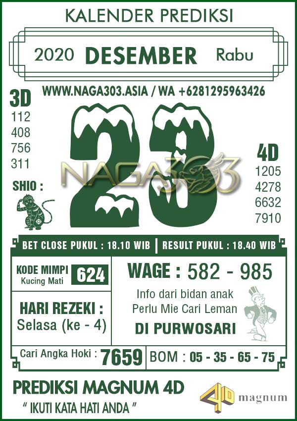 Prediksi Magnum 4D Rabu 23 Desember 2020 | Web Toto Naga303