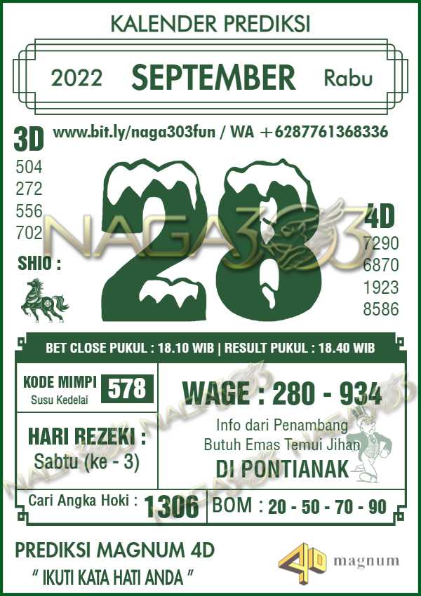 Prediksi Magnum 4D Rabu 28 September 2022 | Web Toto Naga303