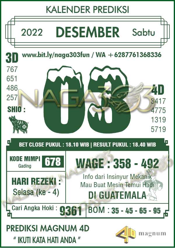 Prediksi Magnum 4D Sabtu 03 Desember 2022