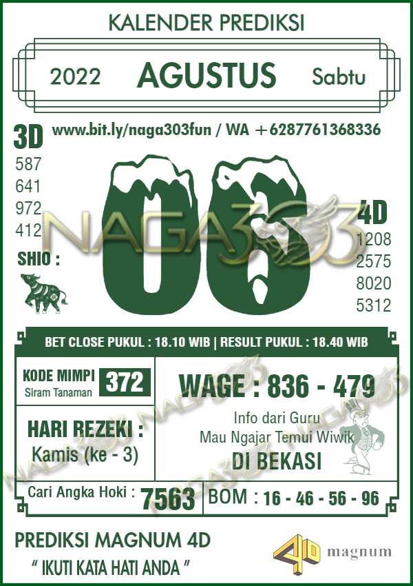 Prediksi Magnum 4D Sabtu 06 Agustus 2022 | Web Toto Naga303