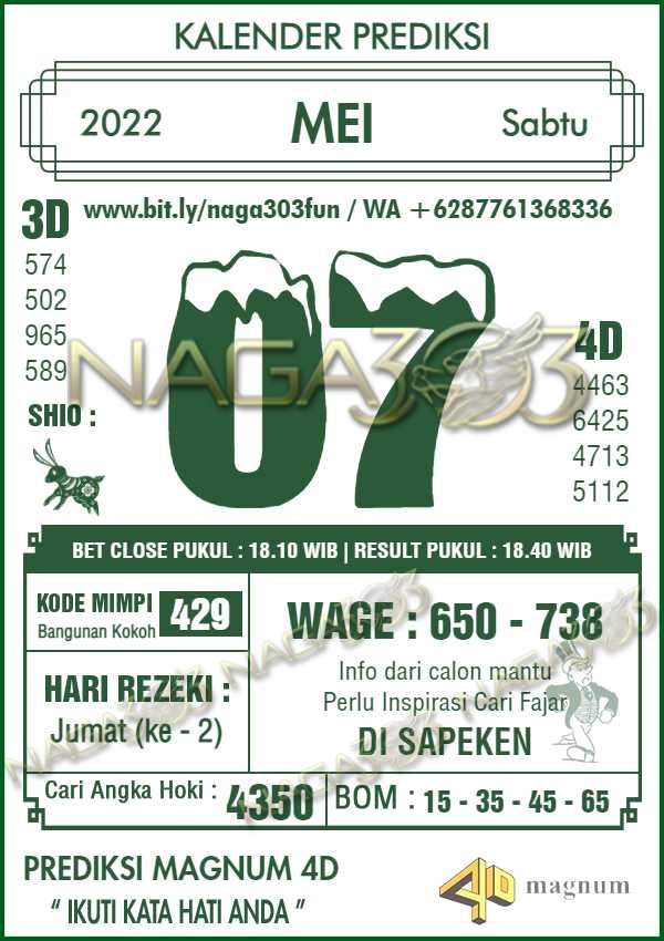 Prediksi Magnum 4D Sabtu 07 Mei 2022