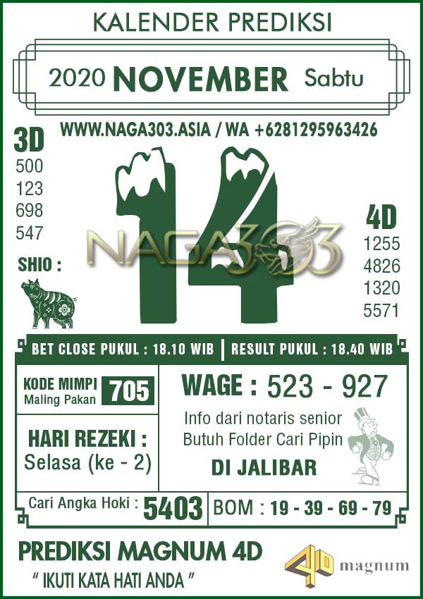 Prediksi Magnum 4D Sabtu 14 November 2020 | Web Toto Naga303