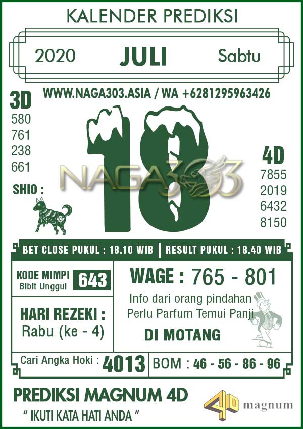 Prediksi Magnum 4D Sabtu 18 Juli 2020