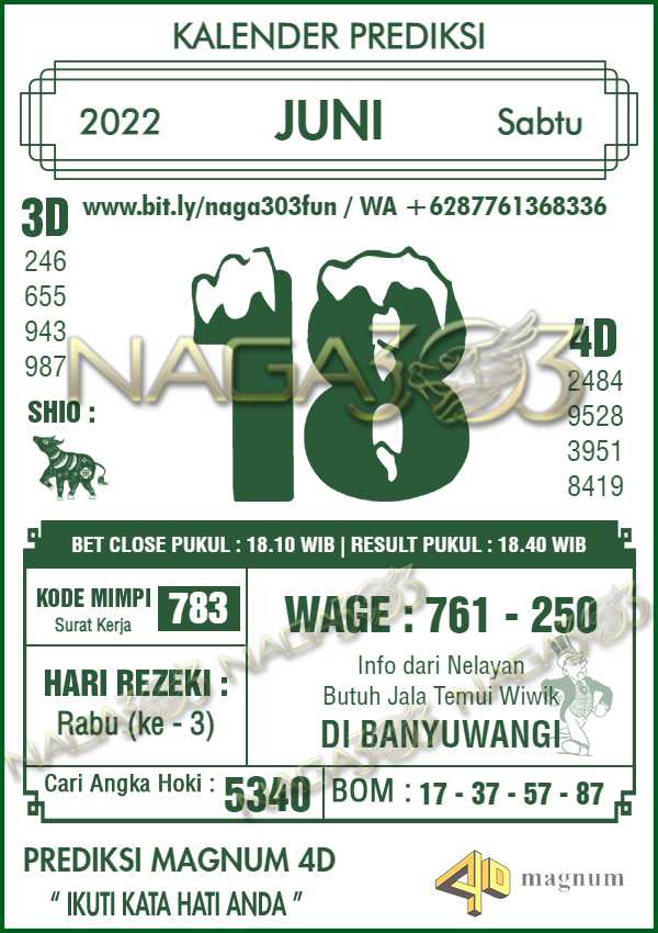 Prediksi Magnum 4D Sabtu 18 Juni 2022