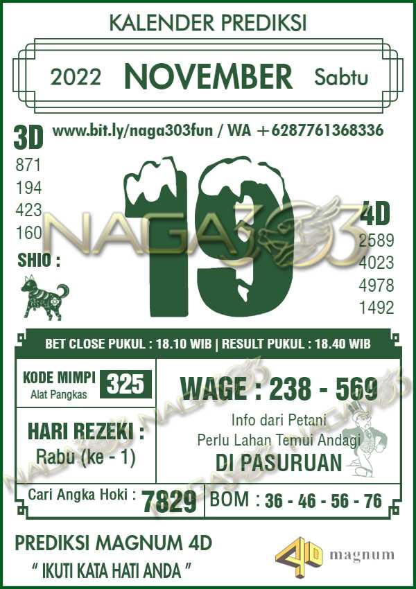 Prediksi Magnum 4D Sabtu 19 November 2022