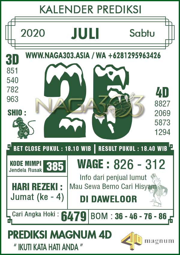 Prediksi Magnum 4D Sabtu 25 Juli 2020