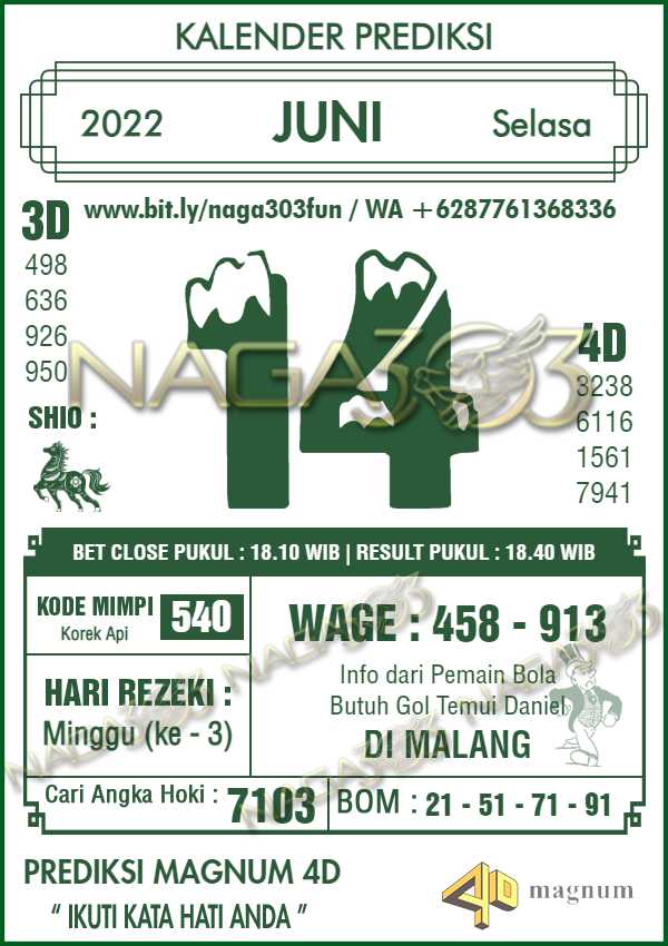 Prediksi Magnum 4D Selasa 14 Juni 2022 | Web Toto Naga303