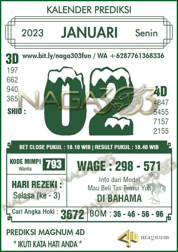 Prediksi Magnum 4D Senin 02 Januari 2023