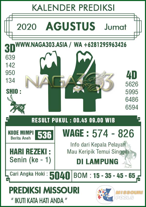 Prediksi Missouri Pools Jumat 14 Agustus 2020