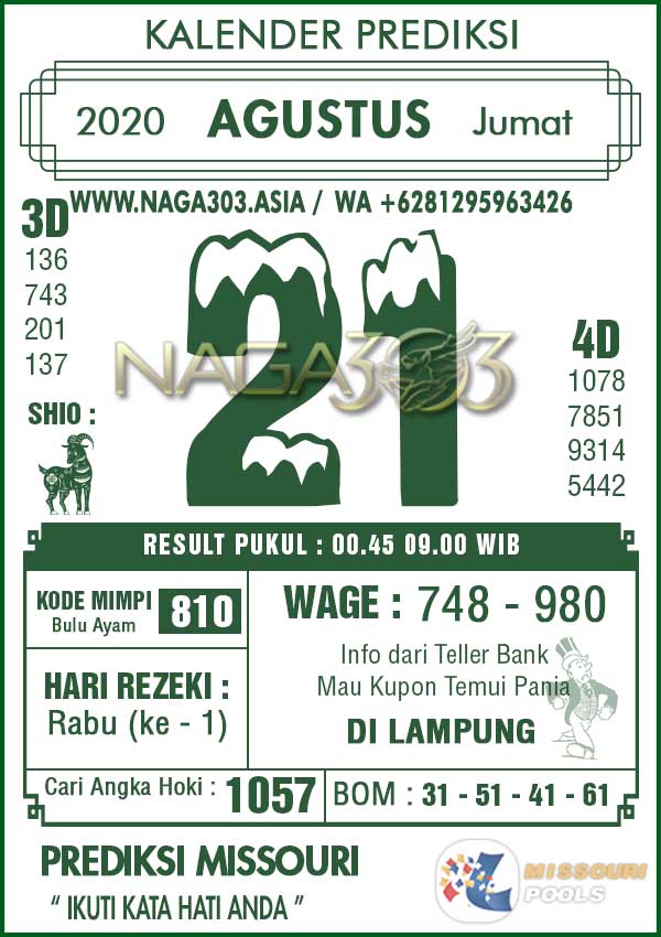 Prediksi Missouri Pools Jumat 21 Agustus 2020