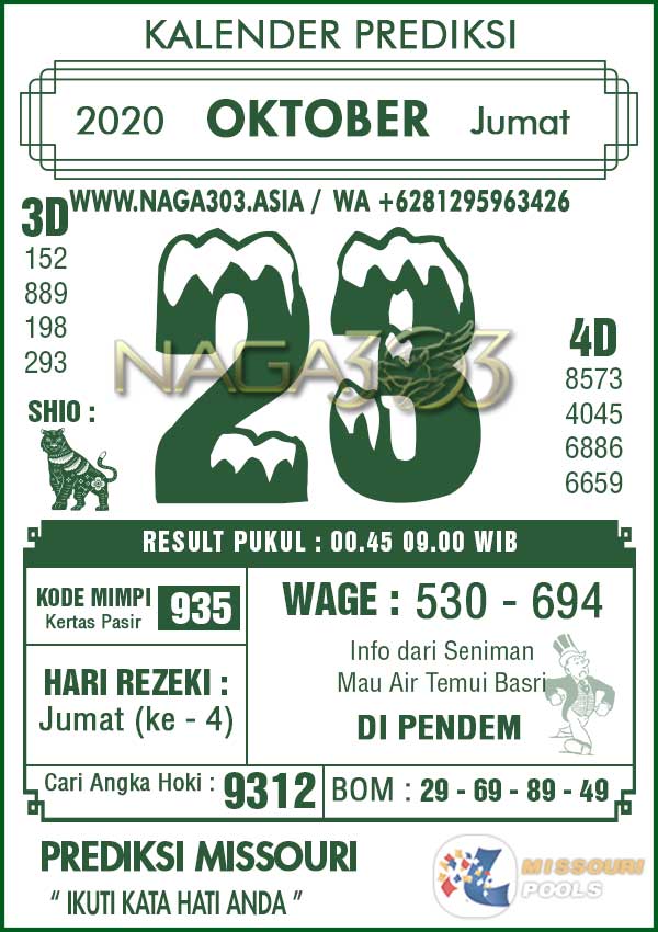 Prediksi Missouri Pools Jumat 23 Oktober 2020 | Web Toto Naga303