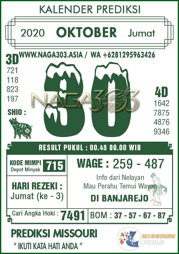 Prediksi Missouri Pools Jumat 30 Oktober 2020