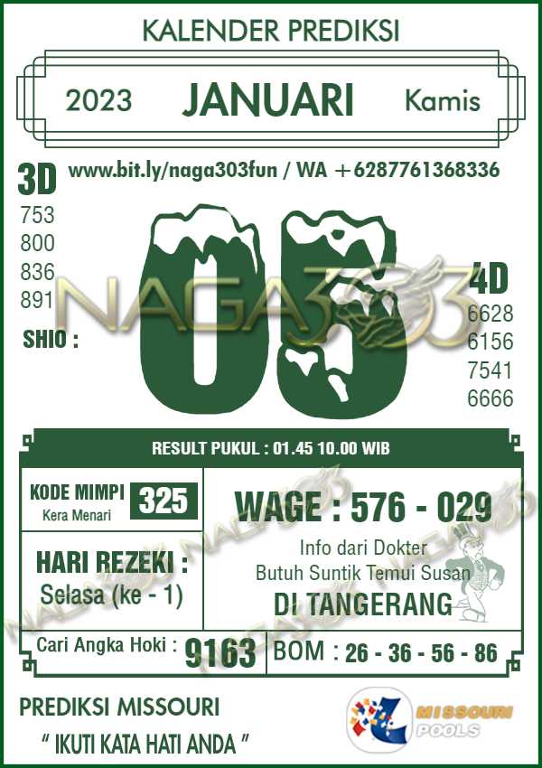 Prediksi Missouri Pools Kamis 05 Januari 2023 | Web Toto Naga303